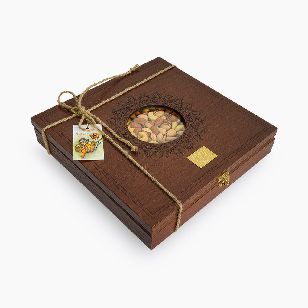 آجیل فروشی محمدی هدایا و سوغات جعبه چوبی مربع بزرگ